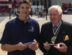 Peter Clark, Master of The Worshipful Company of Masons presented tools to Yeoman Mason Archie Stoke-Faiers on behalf of The Craft Fund Trustees.